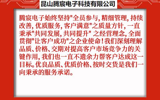 昆山騰宸電子科技有限公司位于中國(guó)線路板加工之都昆山千燈,公司專注于電路板研發(fā)設(shè)計(jì)、PCB抄板、元器件采購、SMT貼片加工、組裝測(cè)試,為客戶提供一站式電子制造服務(wù)。騰宸電子始終堅(jiān)持"全員參與,精細(xì)管理,持續(xù)改善,優(yōu)質(zhì)服務(wù),客戶滿意"之質(zhì)量方針,一直秉承"共同發(fā)展,共同提升" 之經(jīng)營(yíng)理念,全面貫徹"讓客戶成功"之企業(yè)使命!我們深刻理解品質(zhì)、價(jià)格、交期對(duì)提高客戶市場(chǎng)競(jìng)爭(zhēng)力的關(guān)鍵作用,我們也一直不遺余力幫客戶達(dá)成這一目標(biāo)。優(yōu)良品質(zhì)、優(yōu)質(zhì)價(jià)格、按時(shí)交貨是我們一向秉承的服務(wù)承諾。 ...